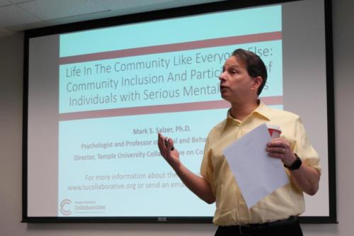 By way of invitation by Alliance Health, Mark Salzer, Ph.D. and Bryan McCormick, Ph.D. from the Temple University Collaborative on Community Inclusion, joined by our very own Lorna Moser, Ph.D., led a workshop with assertive community treatment (ACT) and transition management services (TMS) teams. Agency leadership and staff convened to discuss the importance of and ways to best support people in meaningful community participation.